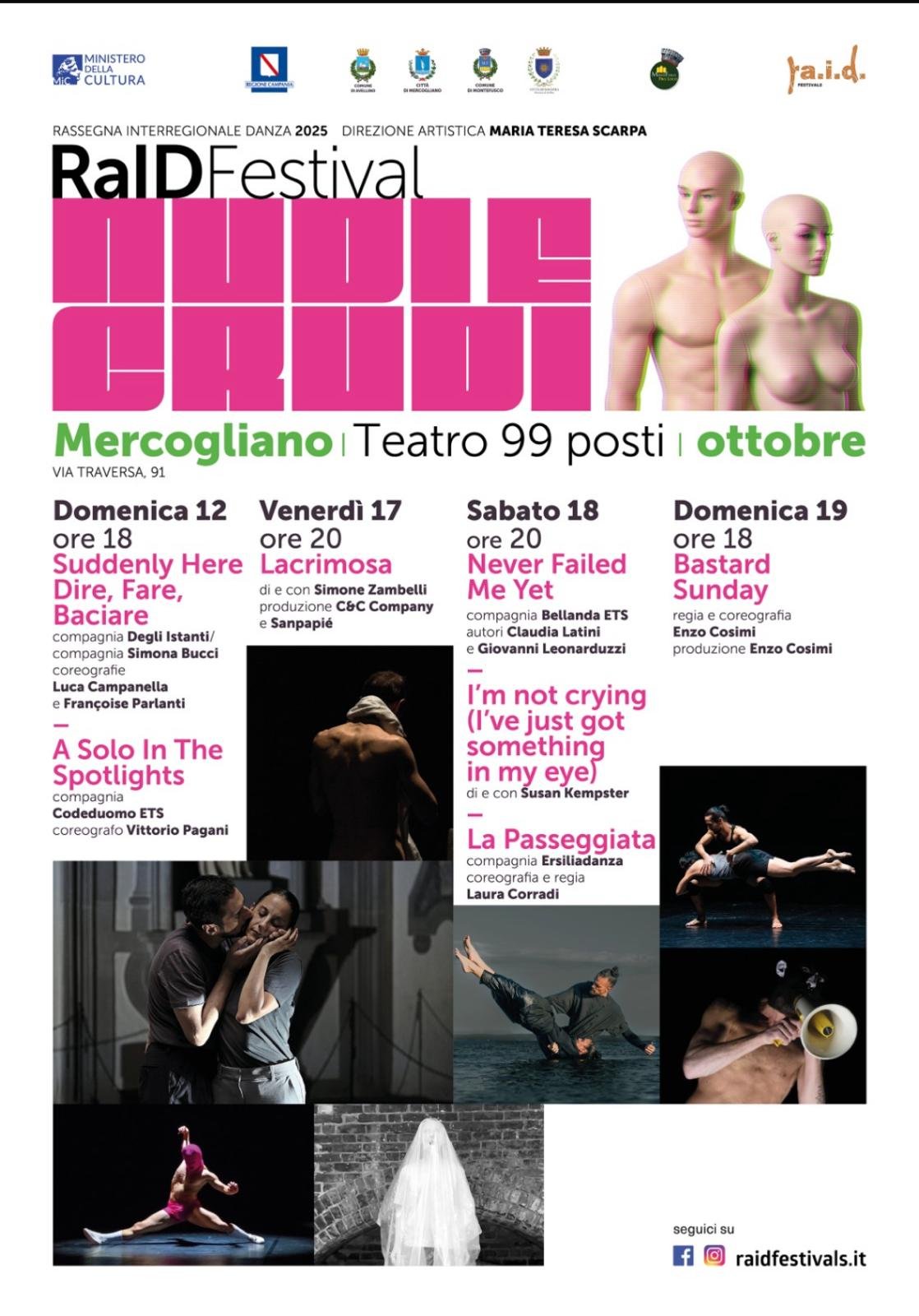 Vi aspettiamo in platea per vivere insieme il RAID Festival 2025 – Nudi e Crudi, una rassegna che porta la danza contemporanea nel cuore dell’Irpinia.