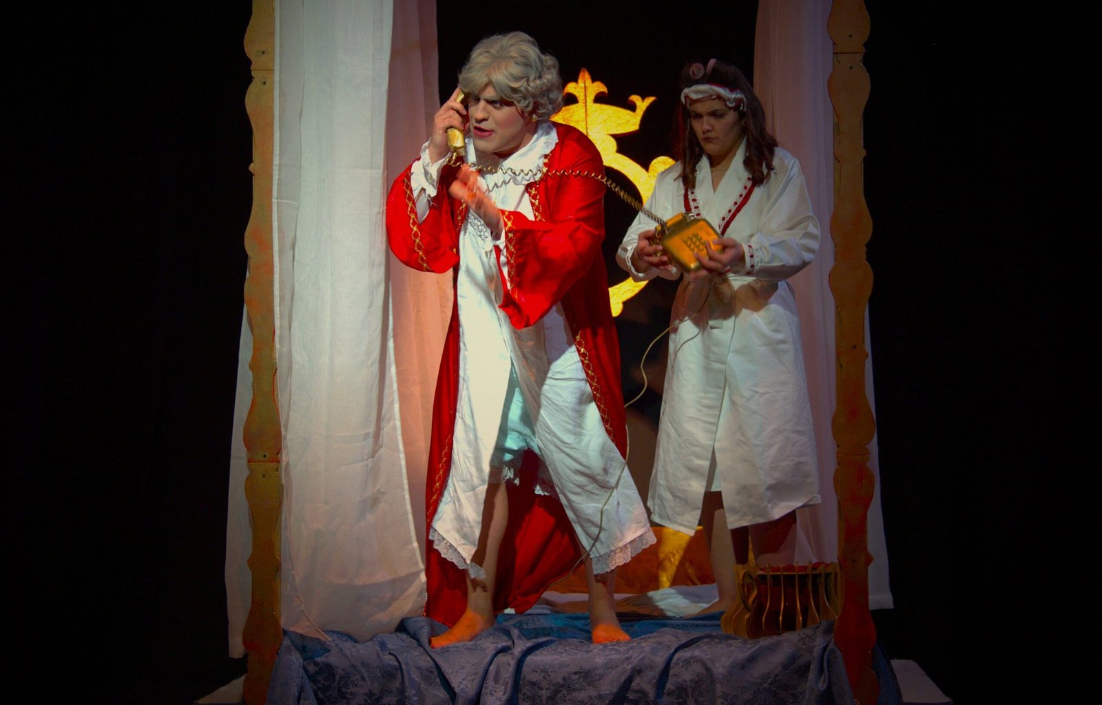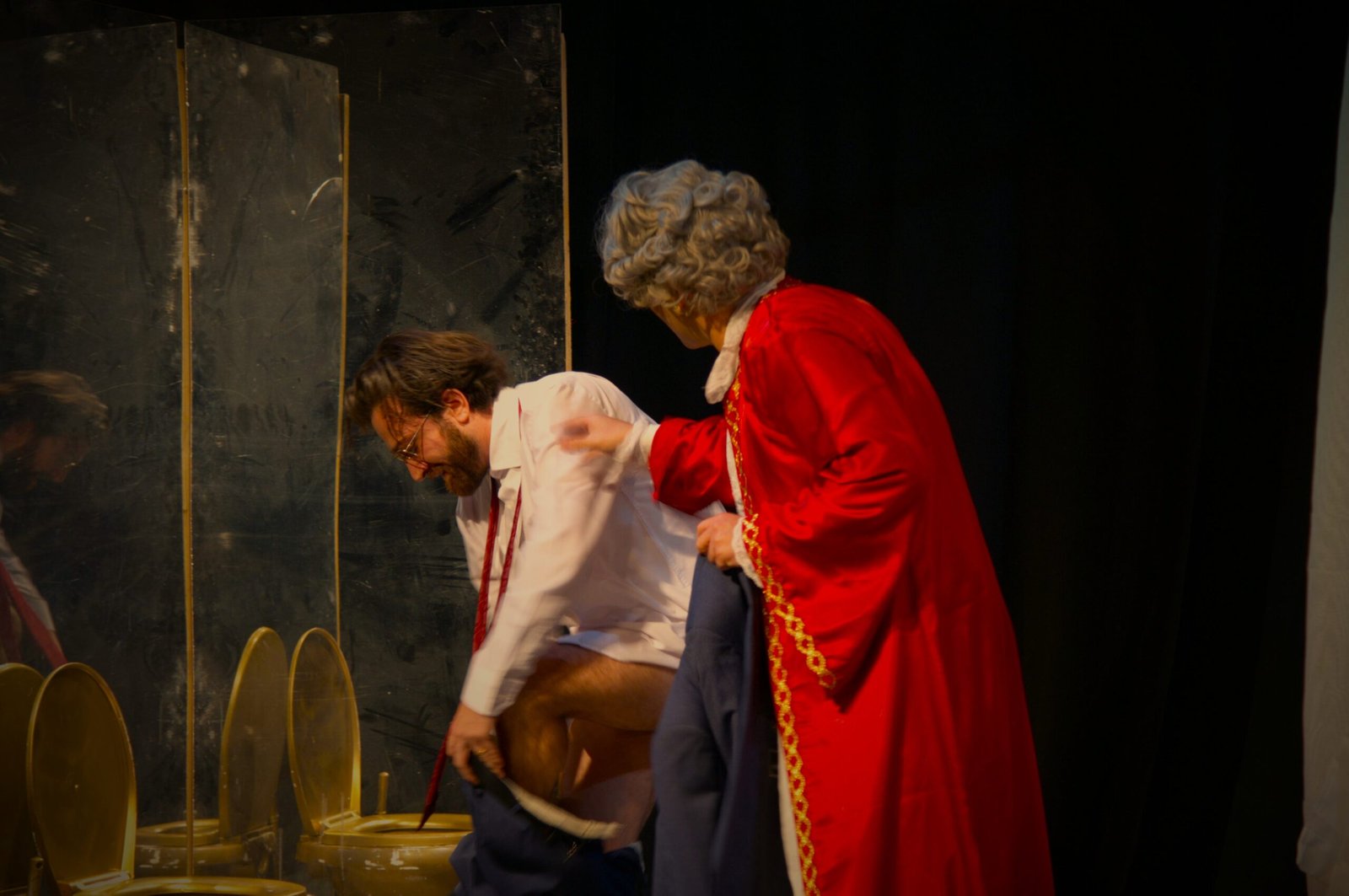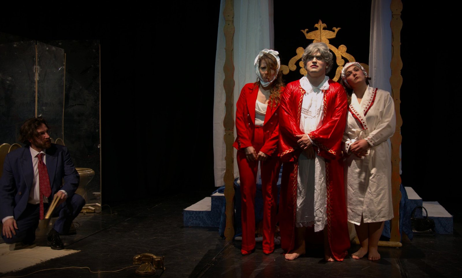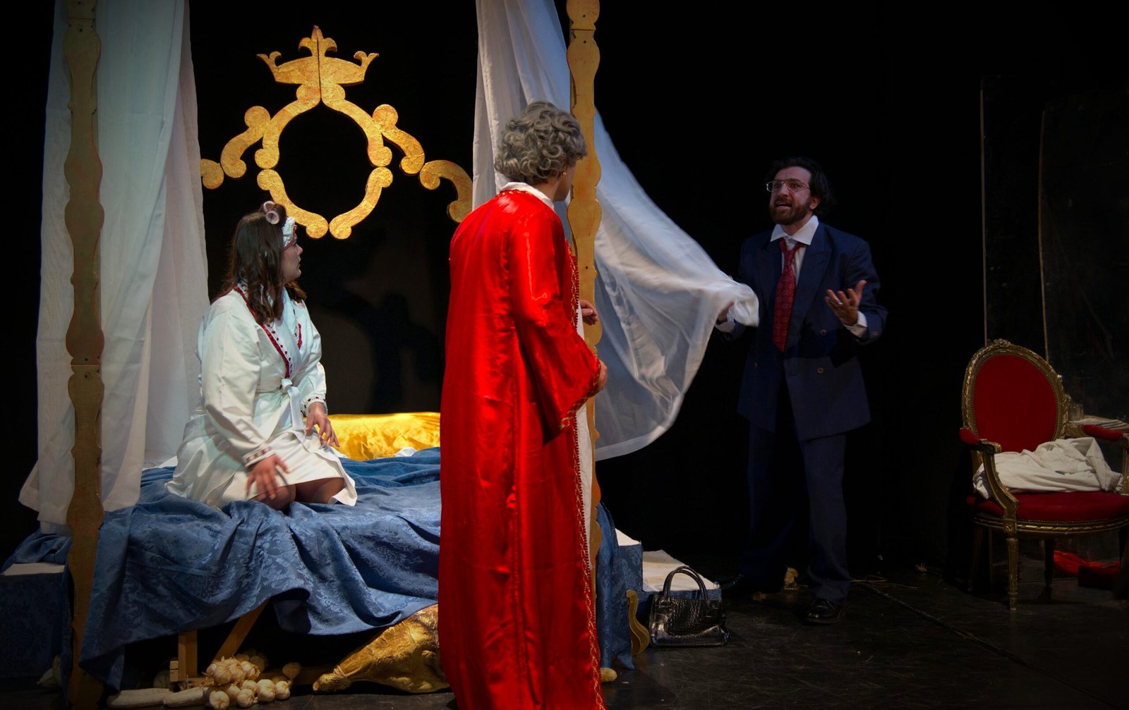 Questo meccanismo mi ha lasciato operare sul rapporto ambiguo di lotta e amore che ogni personaggio ha con la propria immagine – quello che appare e quello che è – tormentati dalla presenza scenica di specchi capaci di spiarli anche mentre sono in bagno. C’è un’ammirazione verso la vera immagine di sé, o rammarico? Resta in ogni modo sconfortante vedere come una Famiglia Reale – simbolo del potere assoluto – si preoccupi con esasperazione di studiare a tavolino come apparire, lasciandosi alle spalle ogni credo ed etica personale. Lo studio certosino di come apparire mi lasciava vedere questi personaggi intrappolati in dei piccoli palcoscenici, dietro sipari piccoli e leggeri che per quanto possano coprire, tradiscono la vera immagine di chi vi si ripara dietro. È il Teatro a rendersi, insomma, protagonista di questo spettacolo; il Teatro nelle sue forme poetiche e storiche, quasi a ricordare meccanismi colorati ed esasperati della grande tradizione della Commedia dell’Arte, e in una forma di ipocrisia sociale perniciosa che ricorda la vera finzione nella quale tutti siamo caduti!
