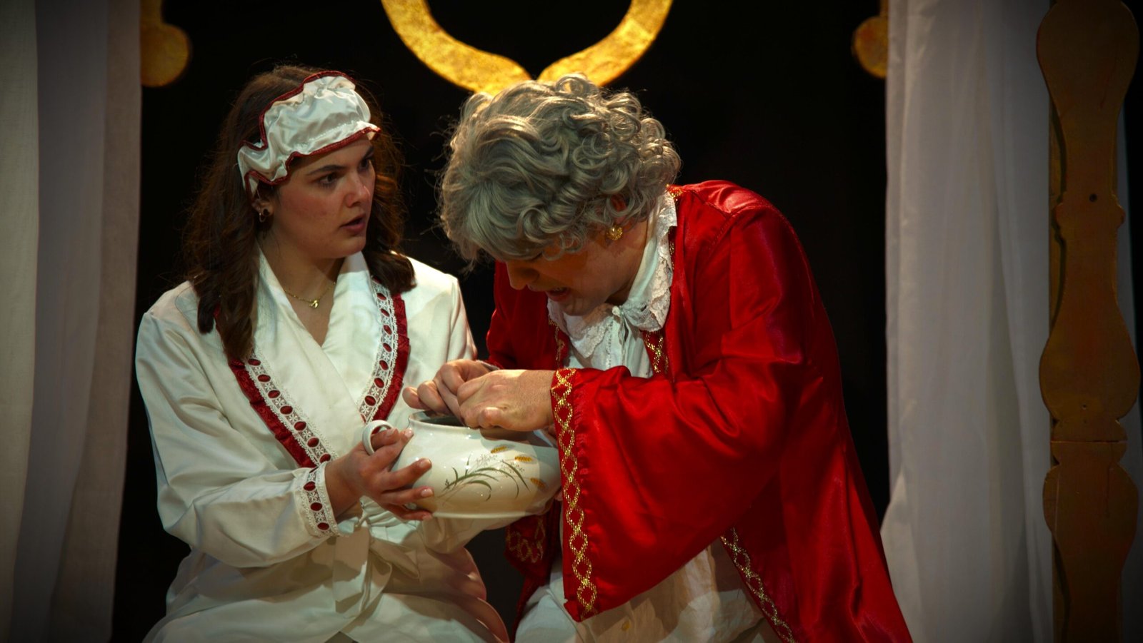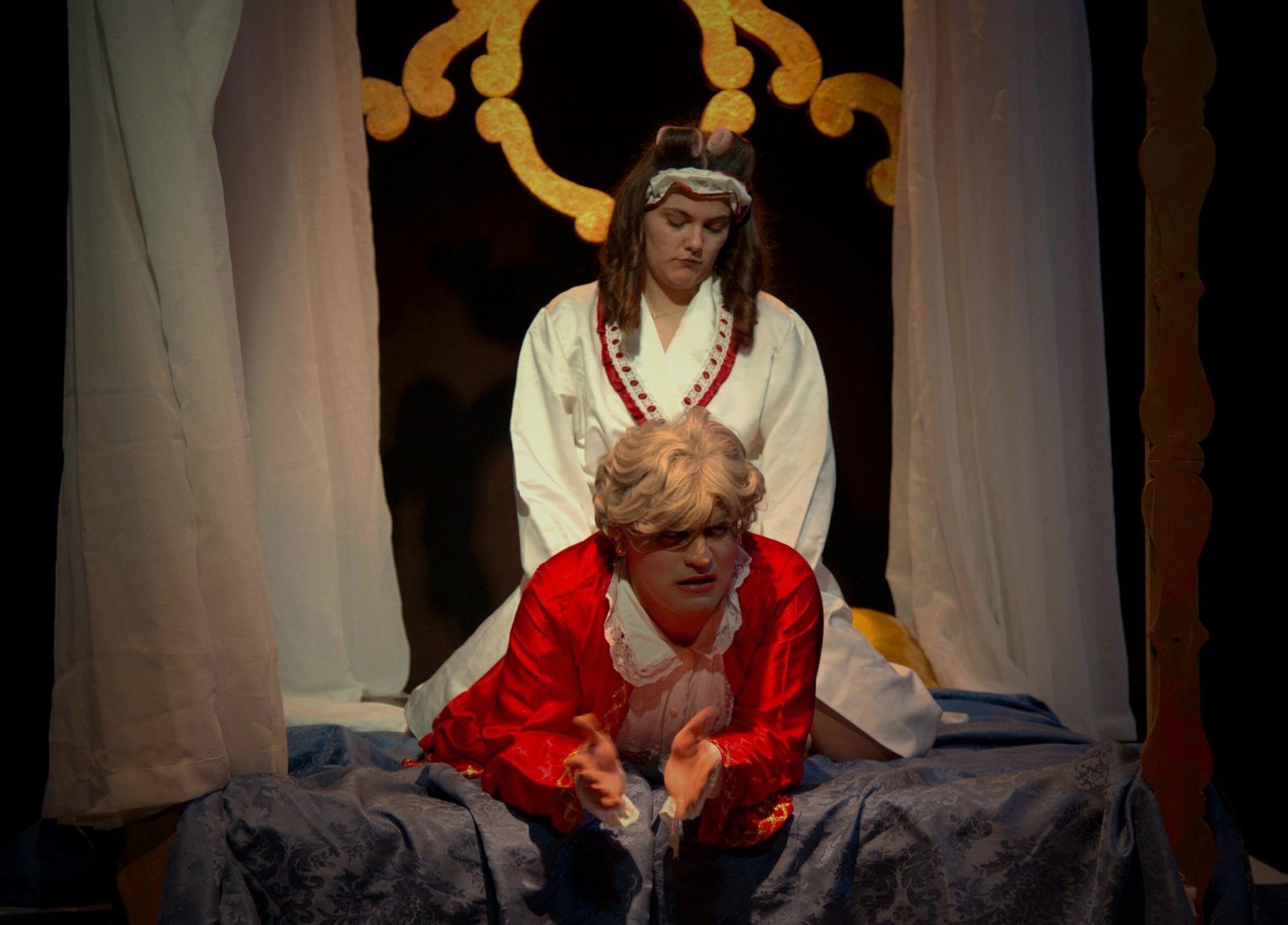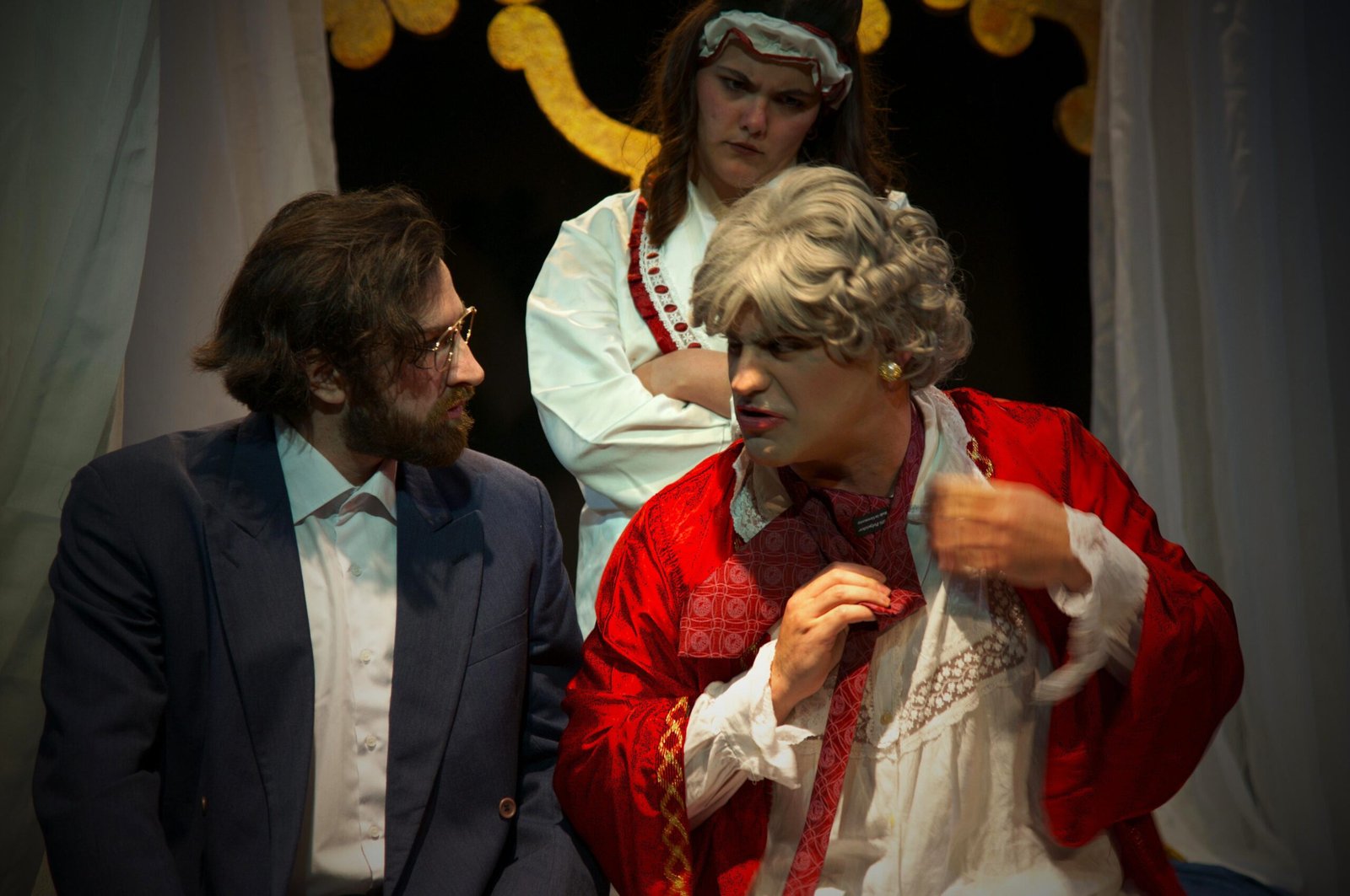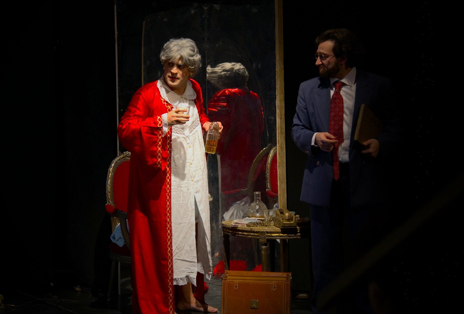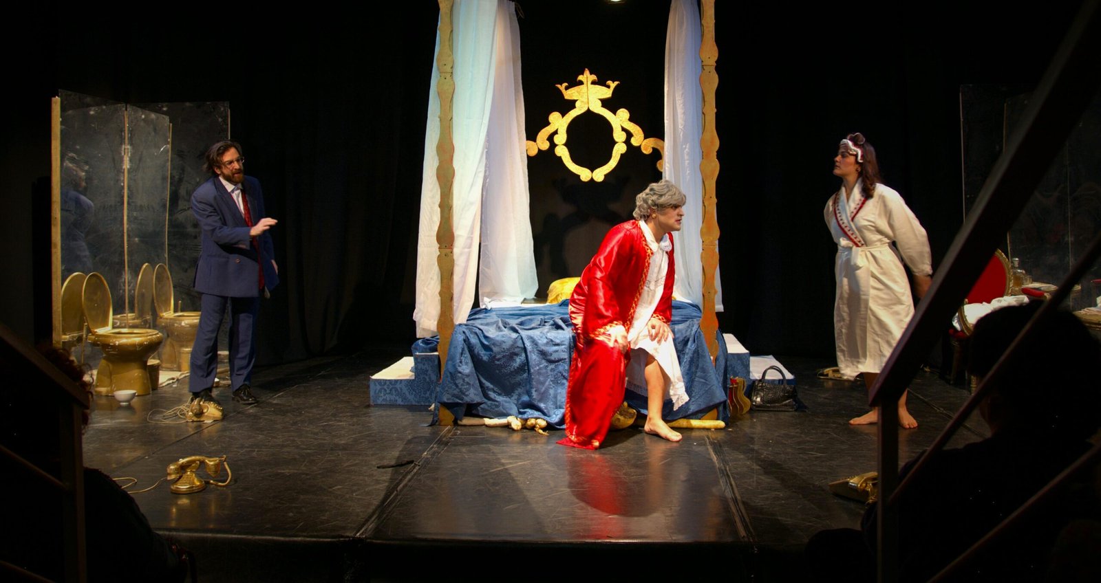 Questo meccanismo mi ha lasciato operare sul rapporto ambiguo di lotta e amore che ogni personaggio ha con la propria immagine – quello che appare e quello che è – tormentati dalla presenza scenica di specchi capaci di spiarli anche mentre sono in bagno. C’è un’ammirazione verso la vera immagine di sé, o rammarico? Resta in ogni modo sconfortante vedere come una Famiglia Reale – simbolo del potere assoluto – si preoccupi con esasperazione di studiare a tavolino come apparire, lasciandosi alle spalle ogni credo ed etica personale. Lo studio certosino di come apparire mi lasciava vedere questi personaggi intrappolati in dei piccoli palcoscenici, dietro sipari piccoli e leggeri che per quanto possano coprire, tradiscono la vera immagine di chi vi si ripara dietro. È il Teatro a rendersi, insomma, protagonista di questo spettacolo; il Teatro nelle sue forme poetiche e storiche, quasi a ricordare meccanismi colorati ed esasperati della grande tradizione della Commedia dell’Arte, e in una forma di ipocrisia sociale perniciosa che ricorda la vera finzione nella quale tutti siamo caduti!