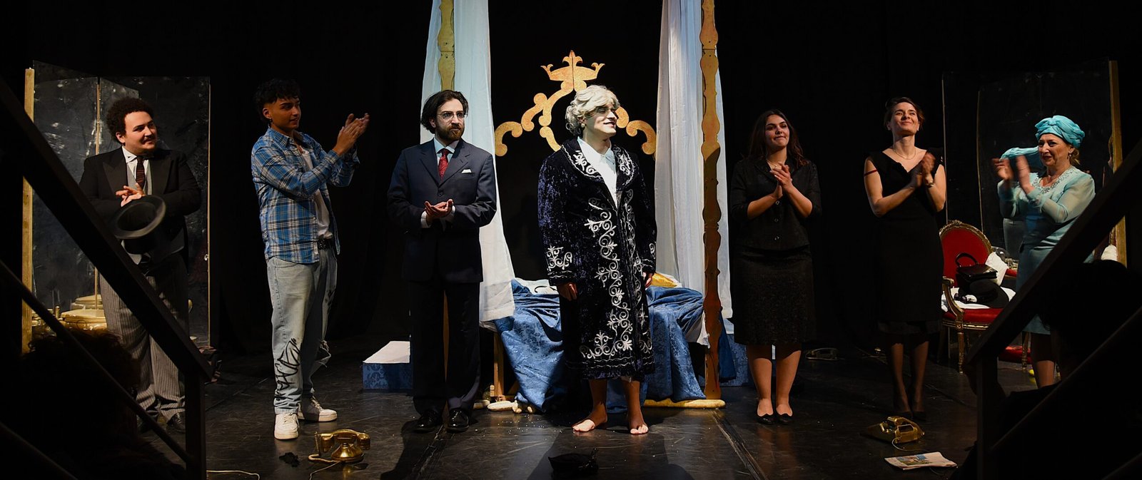 Successo per “Un tragedia reale” andato in scena al Teatro Don Bosco di Caserta. La sala dei Salesiani era gremita per la commedia, scritta da Peppino Patroni Griffi, che ha chiuso la stagione Silver allestita dal Direttore artistico Lello Giacco. A portare in scena la farsa ispirata alla tragica fine della principessa Diana è stato Domenico Palmiero che oltre che firmare la regia ha impersonato sulla scena la Regina con un interpretazione magistrale dove dissacrazione e irriverenza si sono mischiate a ilarità divertendo il pubblico che ha potuto apprezzare anche la bravura degli altri attori ovvero Antonio Lippiello, sulla scena nei panni del premier, Iris Golino, nella parte di Molly, la governante tutto fare della Regina, Attilia Maurano e Giovanni Del Prete, che ha interpretato rispettivamente la principessa sorella e il principe ereditario, Nunzia D’Aiello, sulla scena la Regina madre e lo sconosciuto interpretato da Salvatore Sorrentino. Le scene sono state disegnate dagli studenti del Liceo artistico San Leucio e da Domenico Palmiero e realizzate da Giovanni Santonastaso. Assistente alla regia Valentina Del Prete, Direttore di scena Giovanni Del Prete, costumi realizzati di Serena Ascione, Assistente di scena Rosaria Salzano, trucco a cura di Maria Palmiero, trasporti a cura di Pasquale Del Prete, Direttore di produzione Nunzio Tedesco. Produzione di FSSL Compagnia di Teatro.